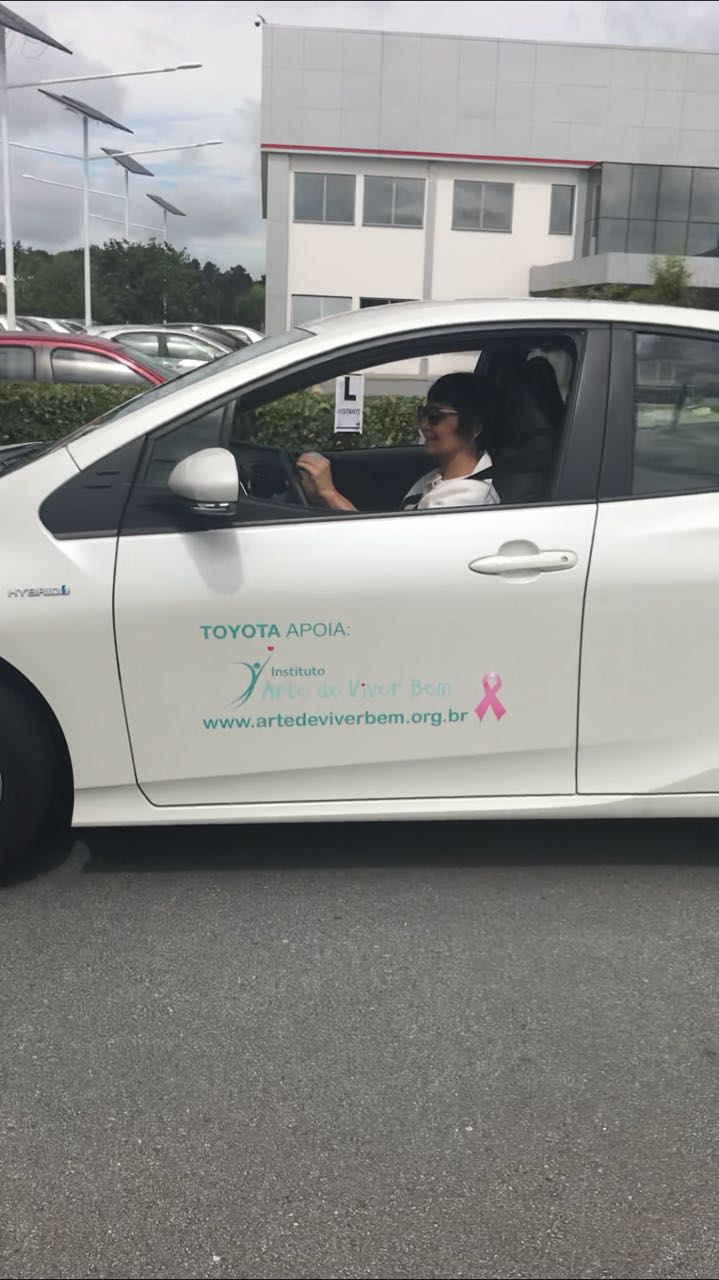 A moça morena que dirige o Toyota Prius por ai é a Valéria Baraccat, presidente e fundadora do Instituto Arte de Viver, que teve duas vezes Câncer de Mama e passou por 13 cirurgias e segue firme, correndo de lá pra cá, lutando para que outras mulheres não passem pelo que ela passou.