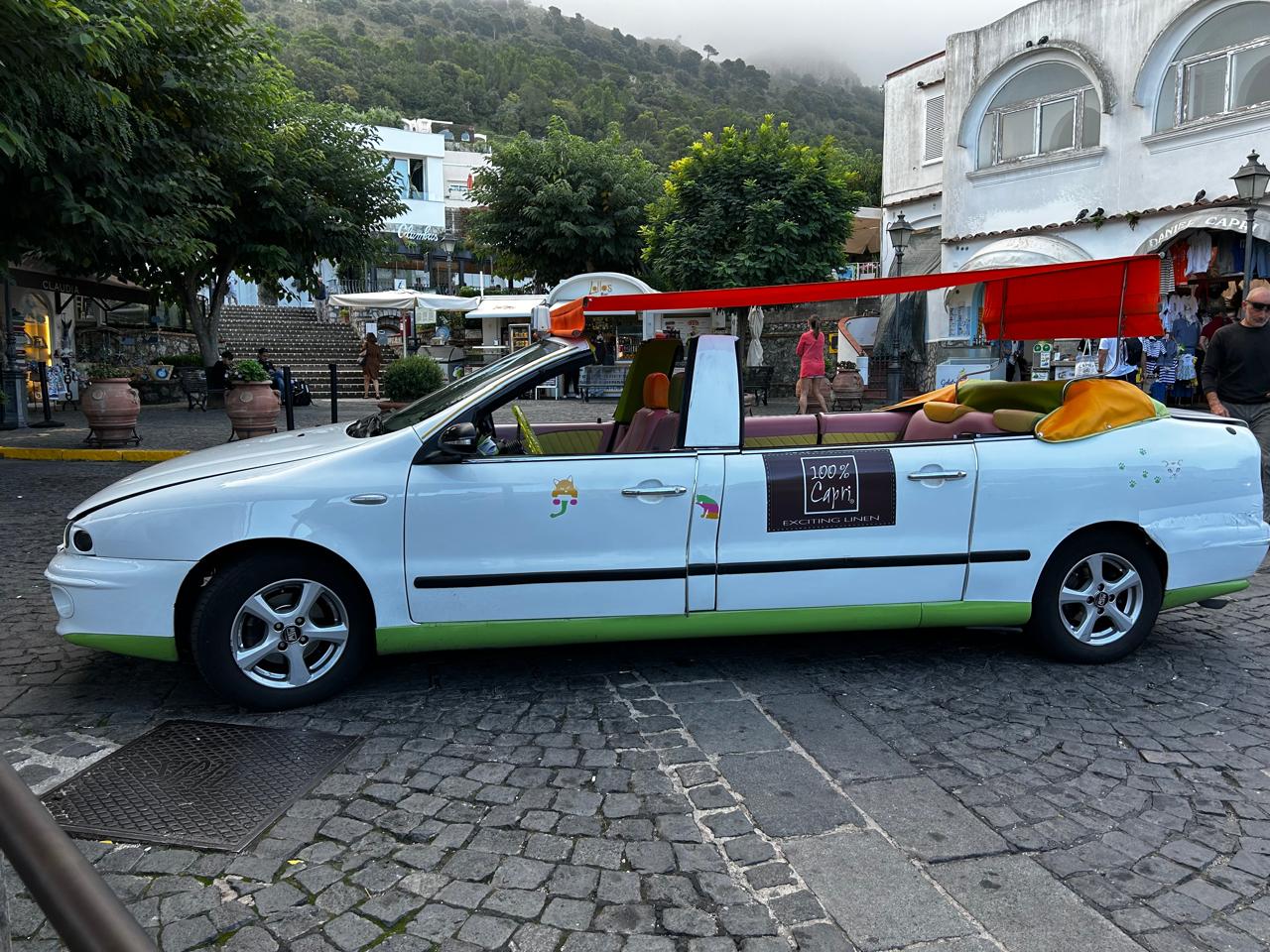 Em Capri eles são montados sobre ao mais variados modelos e marcas, desde o menor dos carros, como um Fiat 600, até algumas “banheiras” que a indústria automobilística produziu. Todos com sua parte superior cortadas, substituídas por toldos que têm suas cores e formato determinado pelo gosto, ou mau gosto, do seu proprietário. Mas são todos “divertidos”.