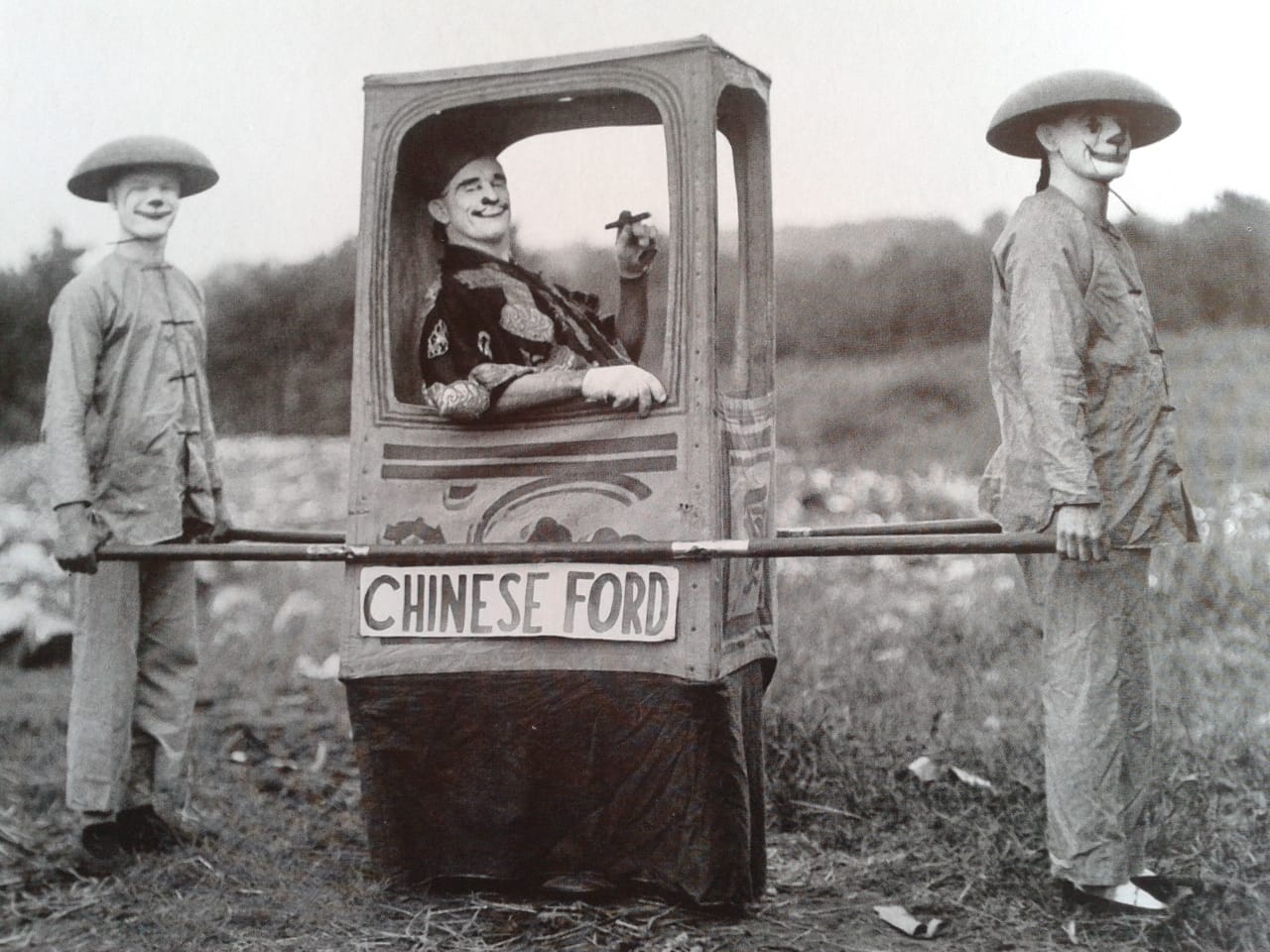 Em seu texto, o autor fala que “Participar de um concurso de circo foi uma grande oportunidade para os palhaços criarem piadas tropicais que abordassem eventos atuais. Quando Henry Ford deu a todos os americanos a possibilidade de possuir um automóvel, esses palhaços surgiram com o que equivalem aos chineses”.