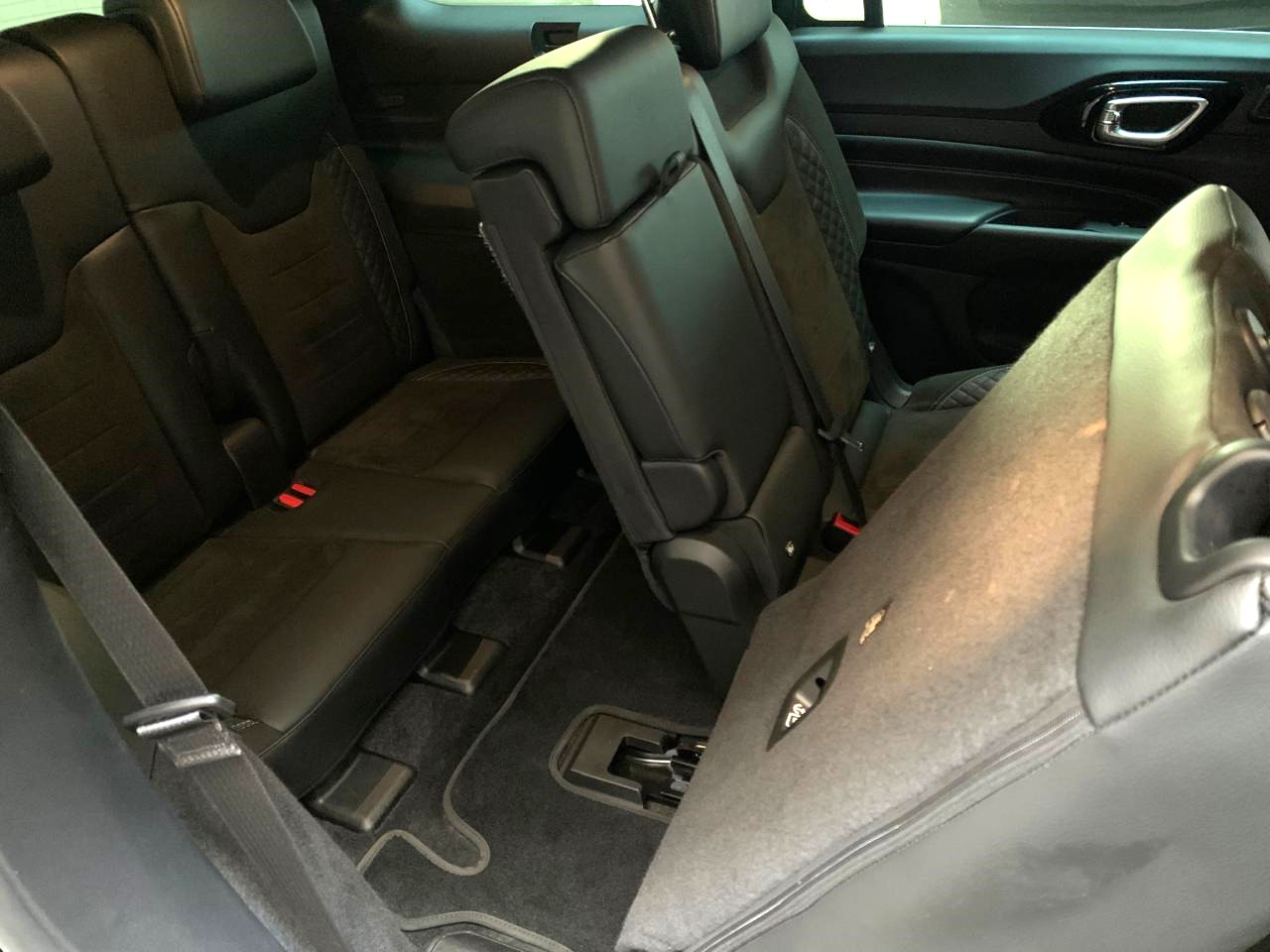 A tampa do porta-malas abre e fecha automaticamente e a capacidade é de 233 litros usando os 7 lugares e com bancos rebatidos a capacidade vai até 1.760 litros. Rebater os bancos da 3ª  fileira é muito simples e quando acontece surge um fundo plano que facilita a colocação de cargas.