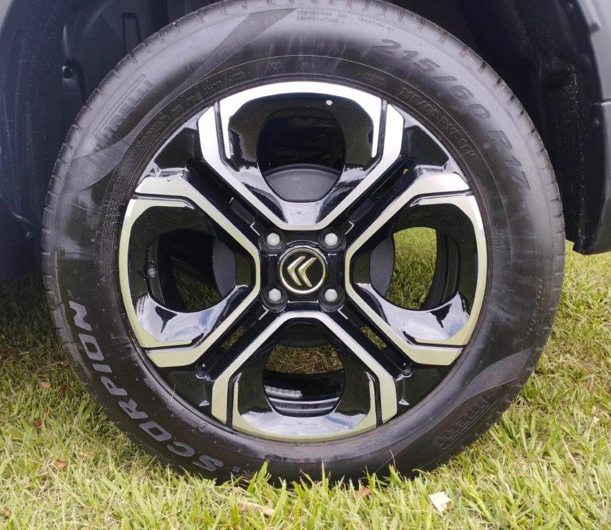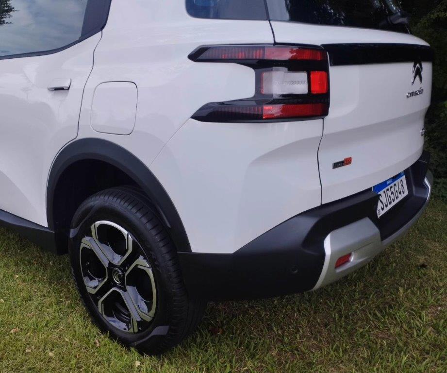 Testei o Citroen C3 Aircross que tem motor 1.0 turbo, 3 cilindros, 130 CV com 200 Nm de torque e câmbio automático CVT de 7 velocidades simuladas. Andei com a versão top, denominada Shine, que custa R$128.590.