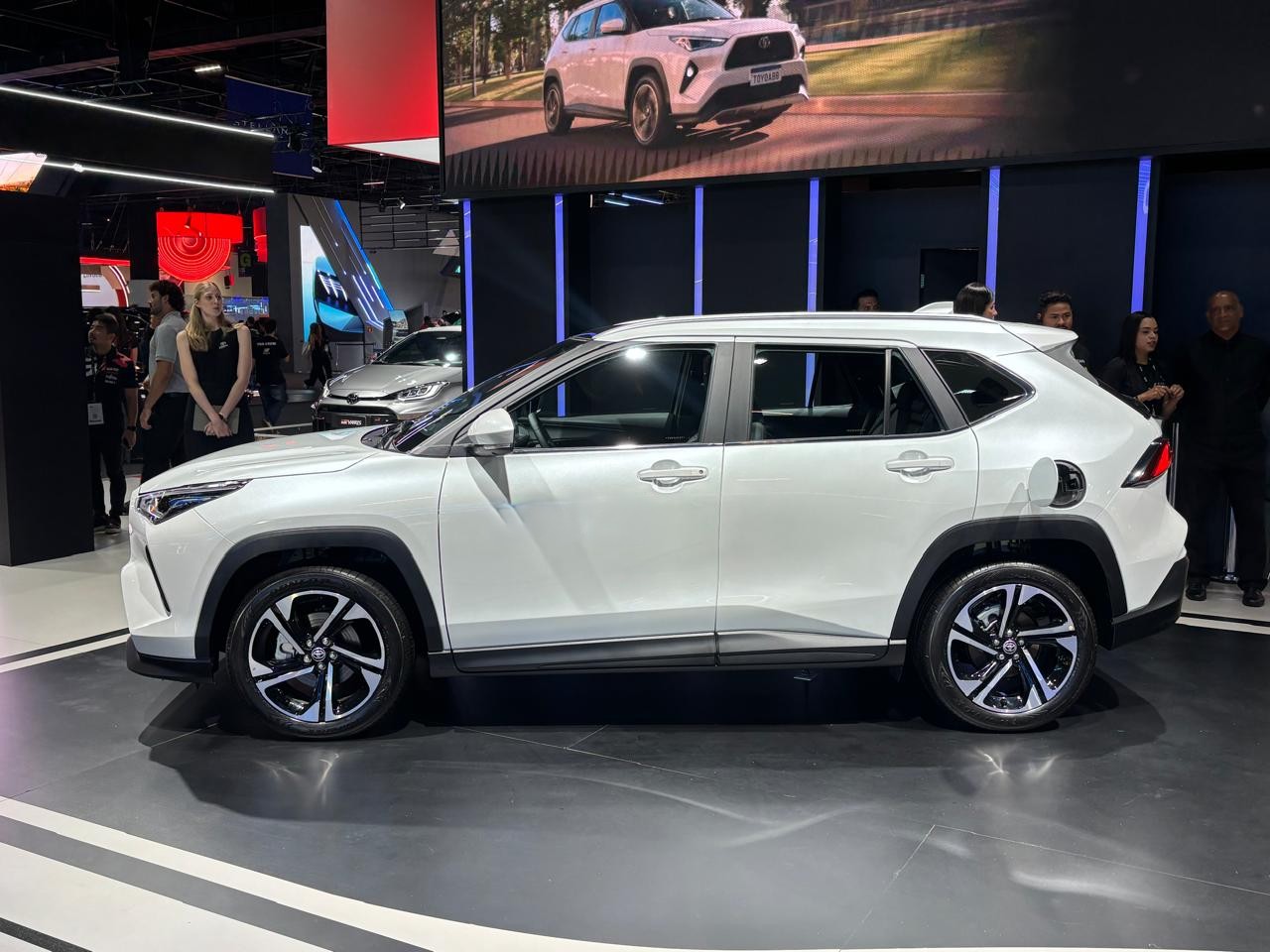 A novidade da Toyota tem boas dimensões e bom espaço para brigar no segmento. Tem comprimento, 4.310 mm; entre-eixos, 2.620 mm; largura, 1.770 mm; altura, 1.665 mm e porta-malas de 400 L na versão com motor a combustão e 391 L na versão híbrida.