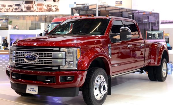 O caminhão F-450 Super Duty, produzido nos EUA, é um exemplo da abrangência da tradicional Ford Série F, linha de veículos comerciais campeã de vendas na América do Norte e pioneira no Brasil. Como indica o nome em inglês, o veículo é destinado a serviço pesado, com chassi de aço de alta resistência e carroceria de liga de alumínio de nível militar. Com motor V8 turbodiesel de 6.7 litros, que gera mais de 440 cavalos, tem capacidade de tração de mais de 14.700 kg.