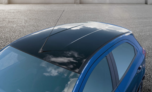 O modelo é o único da linha a vir com pintura azul Belize e teto preto, cor presente também na grade dianteira, maçanetas, espelhos retrovisores e nas rodas de liga leve de 15 polegadas – com o mesmo desenho da versão Titanium.