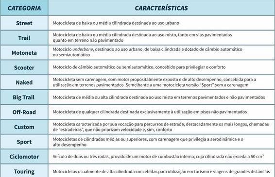 | VAREJO DE MOTOCICLETAS POR CATEGORIA | |||||