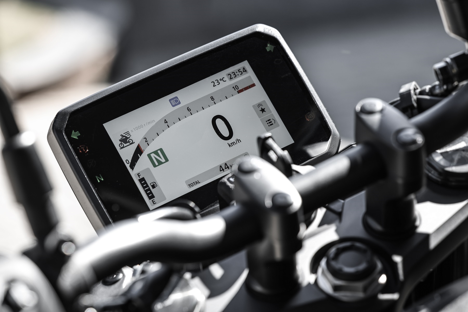 O painel TFT colorido de 5 polegadas se vale de uma nova tecnologia que melhora a visibilidade em ambientes com muita luz. Uma resina especial é aplicada entre a camada superior do painel e o próprio display, reduzindo os reflexos e aumentando a iluminação de fundo. As diversas funções do painel podem ser acessadas através do comando retro iluminado situado no punho esquerdo.