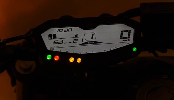 O já consagrado painel e seu posicionamento ao centro do guidão, tornou-se uma das marcas registradas do modelo. Bastante completo, ele tem display em LCD e iluminado por LED e é totalmente digital. Conta com relógio, indicadores de marcha e combustível; outro destaque é o conta giros em barras entre 4.000 a 8.000 rpm que indica, além da rotação, a faixa de maior torque. Ainda tem, hodômetro total e parcial, consumo médio, consumo instantâneo, F-trip (hodômetro parcial de reserva de combustível), temperatura do líquido de arrefecimento, temperatura do ar de admissão e o indicador “Eco”, que mostra quando a motocicleta está consumindo de maneira eficiente o combustível considerando rotação do motor, ângulo de abertura da borboleta, velocidade da motocicleta e indicador de marcha.