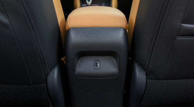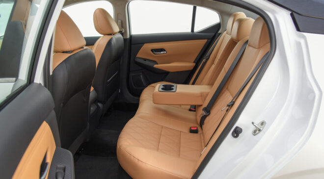Para acomodação de objetos do dia a dia, o Novo Nissan Sentra conta com seis espaços na frente, cinco atrás e oito porta-copos (quatro na dianteira e quatro para atender o banco traseiro). Outro destaque é o compartimento no console central, embaixo do apoio de braço, com impressionantes 7,7 litros de capacidade. Como os usuários estão usando cada vez mais equipamentos móveis, no interior há três entradas USB para carga de aparelhos: duas na frente (uma delas tipo “C”, de carga mais rápida) e uma atrás. Todas foram colocadas em posições estratégicas e fáceis de acessar.