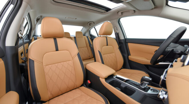 A esportividade do Novo Nissan Sentra 2025 continua reforçada com o teto solar, faróis de neblina, rodas de liga leve aro 17 diamantadas e grade inferior no para-choque traseiro. Mais largo que seus concorrentes, o modelo tem interior espaçoso e oferece conforto acima do nível do segmento. Assim, o motorista fica em uma área confortável, de onde comanda o sedã, que tem direção elétrica com volante em forma de “D”, com base achatada, que proporciona melhor pegada das mãos e tem ajustes de altura e profundidade. Ali também estão funções de conforto e segurança como as aletas para troca de marchas manuais (para as duas versões) e o acionamento do Piloto Automático Inteligente (ICC) – disponível para a versão Exclusive.