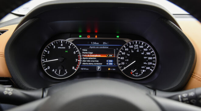 Colorido e de 7 polegadas, o painel TFT facilita a visualização das informações do computador de bordo, que tem funções de medição de consumo médio de combustível, tempo de viagem, velocidade média, autonomia, temperatura externa, aviso de abertura das portas, quilometragem total e parcial e mensagens de alerta.