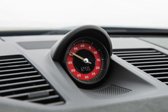 O cockpit padrão preto de dois lugares no novo 911 GT3 é baseado no design dos modelos 911 atuais. Ao contrário dos modelos Carrera, no entanto, o 911 GT3 não é ligado por um botão, mas ainda possui um interruptor de ignição rotativo. Uma gaiola de proteção contra capotamento opcional demonstra a proximidade com o automobilismo. O painel de instrumentos digital no centro apoia o motorista com um display e conceito de controle claramente estruturados. Graças ao esquema de cores contrastantes, o conta-giros e o cronômetro podem ser lidos rapidamente. O modo de exibição “Track Screen” reduz as exibições digitais à esquerda e à direita do tacômetro para dados-chave sobre pneus, óleo, água e combustível e indica o momento ideal para troca de marchas ao motorista por meio de uma luz de troca. Se desejado, o display do tacômetro pode ser rotacionado para que a rotação de corte de 9.000 rpm fique na marca de 12 horas.