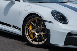 Seu baixo peso total contribui para o manuseio ágil e direto do 911 GT3. O novo 911 GT3 aposta inteiramente no design leve. Uma nova roda leve de alumínio prateada reduz as massas não suspensas em mais de 1,5 kg em comparação com o modelo anterior. Opcionalmente, rodas de magnésio estão disponíveis com o pacote Weissach ou o pacote leve. Elas economizam nove quilos. Uma nova bateria leve de íon-lítio de 40 Ah reduzem o peso em mais cerca de quatro quilos. Na configuração mais leve, o novo 911 GT3 pesa apenas 1.420 quilos.