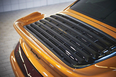 As rodas pretas são valorizadas por detalhes na cor da carroceria, enquanto os bancos e acabamento interno são pretos, com detalhes também em amarelo dourado.