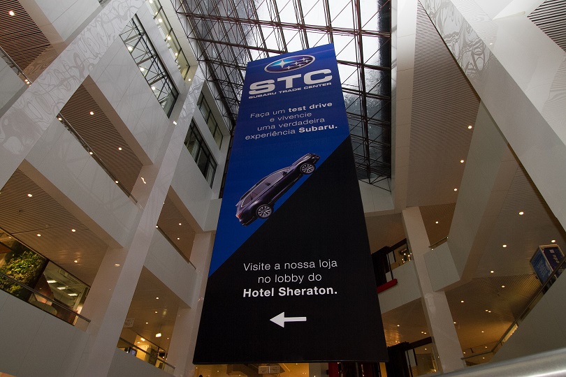 Após instalar, no Sheraton São Paulo WTC Hotel – que integra o complexo Subaru Trade Center -, a primeira concessionária do País a funcionar em um lobby de hotel, a Subaru inova mais uma vez e montou um mega banner na praça de alimentação do D&D Shopping.