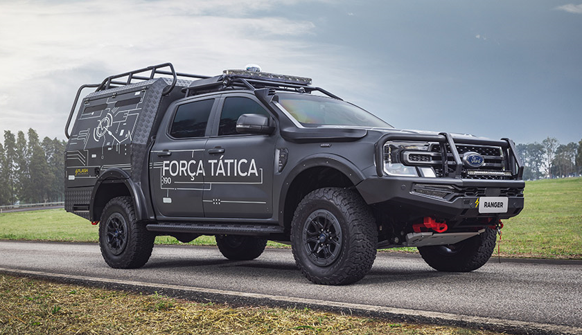 A Nova Ranger XLS 3.0 V6 4WD personalizada para forças militares é um exemplo da versatilidade de aplicações da picape A versão modificada pela Flash Engenharia inclui blindagem com material 30% mais leve, cela humanizada e canil O novo motor 3.0 V6 é o mais forte da categoria, com torque de 61 kgfm, transmissão automática de 10 velocidades e tração 4WD A Ford Ranger redefiniu o segmento de picapes médias com a sua nova geração e ampliou a versatilidade de aplicações da linha com introdução da inédita versão 3.0…
